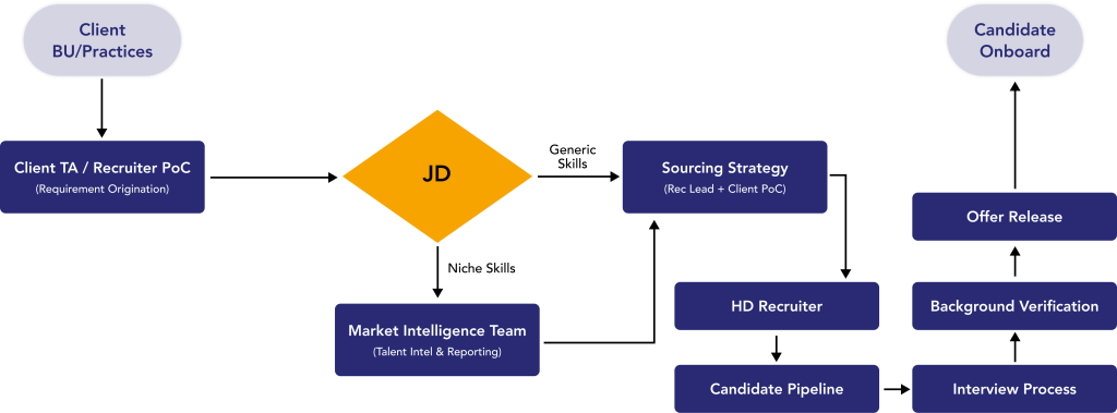Centralized sourcing model improves recruiter productivity and reduces dependency on multiple vendors.
